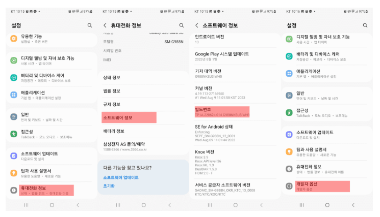 • 빌드번호 7번 이상 클릭 > 개발자 모드를 켰다는 메세지가 나올때까지 탭