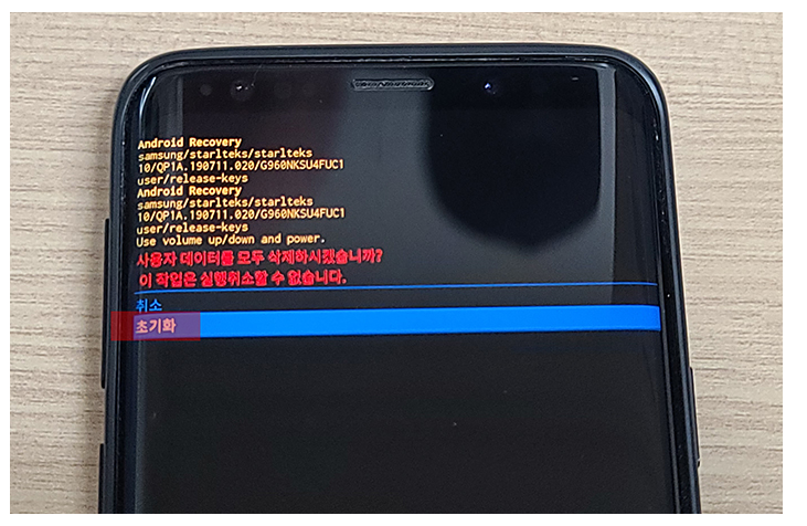 기종이나 안드로이드 버전에 따라 OEM 모드 실행 시 자동으로 공장초기화가 되기도 합니다. 만약 데이터 삭제 알림이 나온다면 사용 메뉴를 선택하시면 나머지 과정은 기기가 알아서 진행합니다.