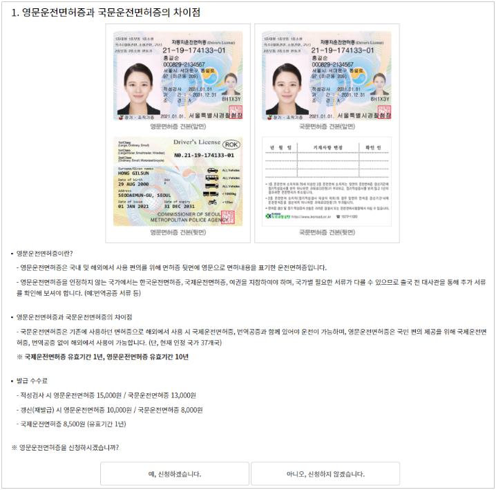 6) 영문 운전면허증 신청 여부를 선택합니다.