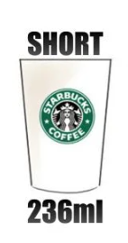 스타벅스에서 판매중인 가장 작은 사이즈의 음료로, 숏 사이즈의 크기는 236ml(8oz) 입니다. 스타벅스는 미국 브랜드이기 때문에 부피의 단위를 기본적으로 온스를 사용하기 때문에, 국제 규격인 ml로 변환할 경우 10단위로 떨어지지 않습니다. 숏 사이즈는 매우 작기 때문에 구매에 제한이 있으며, 주문이 불가능한 음료가 많고 아이스 음료는 숏사이즈로 판매가 되지 않습니다.
