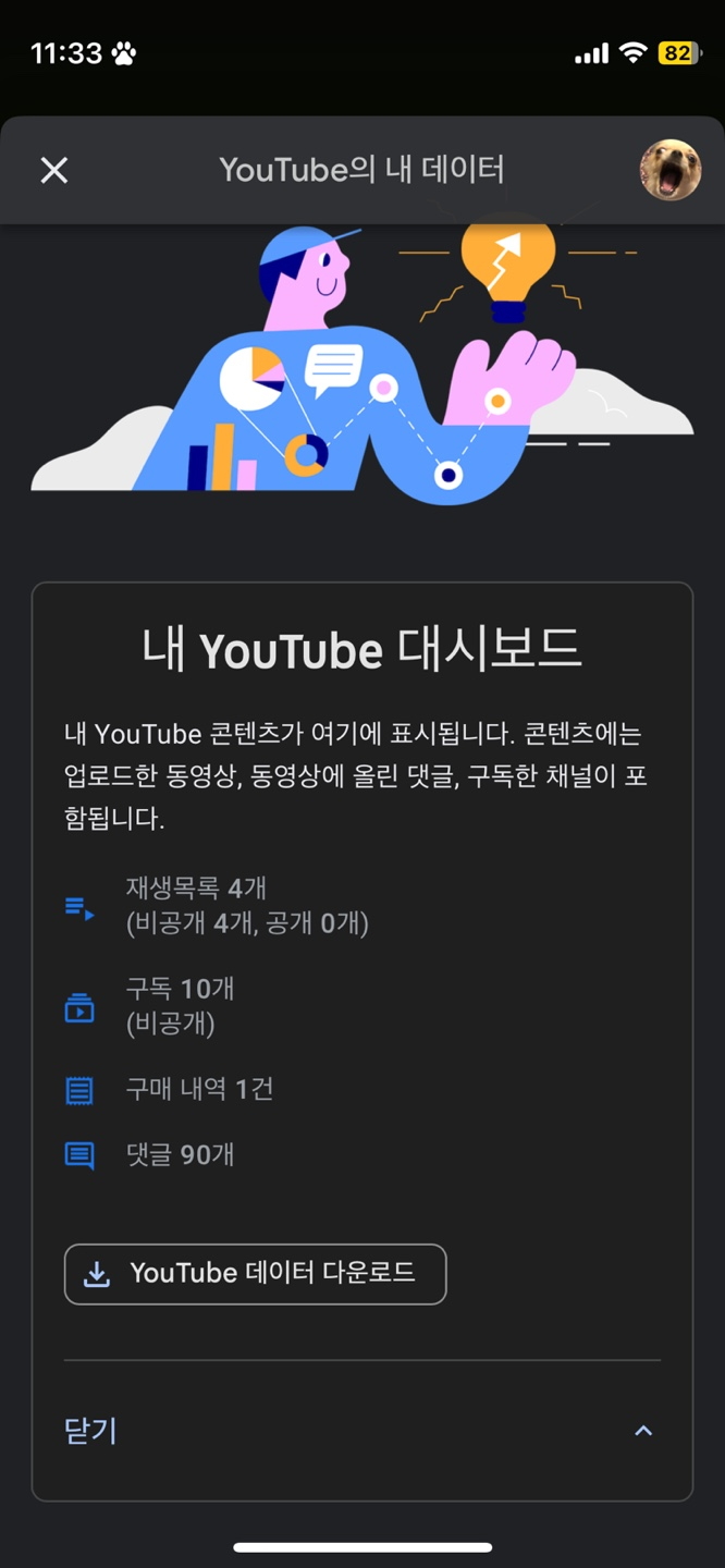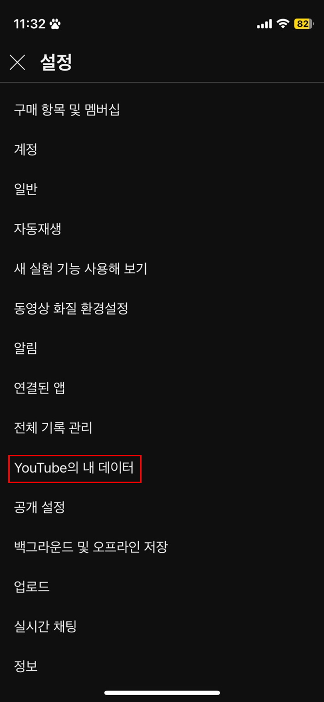3) YouTube의 내 데이터 카테고리를 클릭합니다.