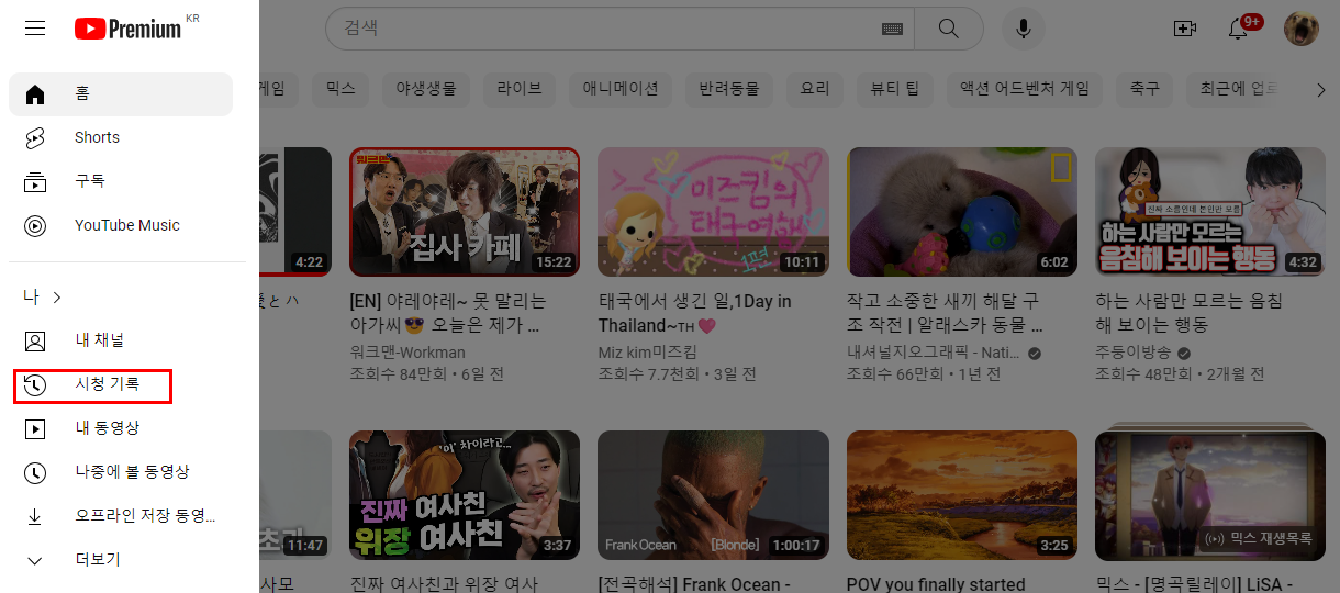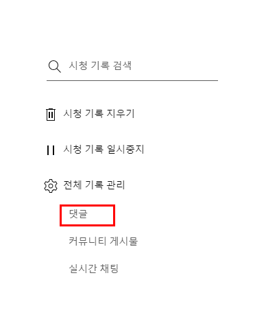 2) 좌측 상단의 메뉴바에서 시청 기록 카테고리를 클릭합니다.