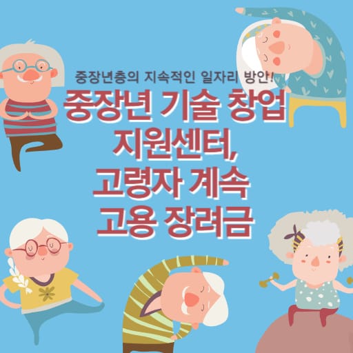 중장년 기술 창업센터 지원 은 전문 분야에 근무한 경험이 있는 신중년에게 일자리 재참여 기회 제공 및 중장년층의 창업, 계속 고용을 지원합니다. 지원 대상은 기술창업을 희망하는 만 40세 이상 예비창업자 및 퇴직예정자 입니다. 이 외에도 고령자 계속 고용장려금, 고령자 고용지원금 등의 다양한 제도가 있으니 끝까지 보시고 좋은 정보들을 알아가시길 바랍니다.