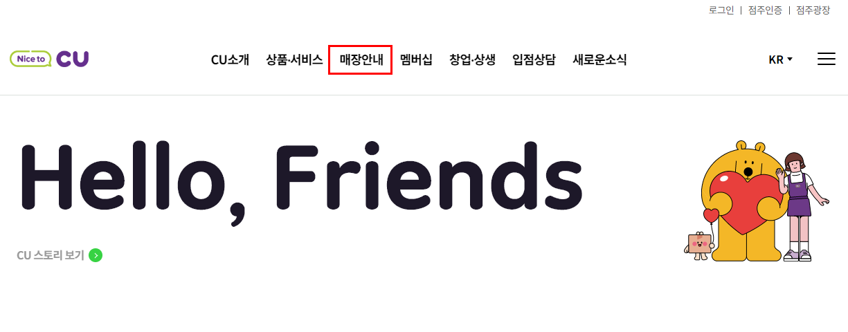 2) 상단의 매장안내 메뉴를 클릭합니다.