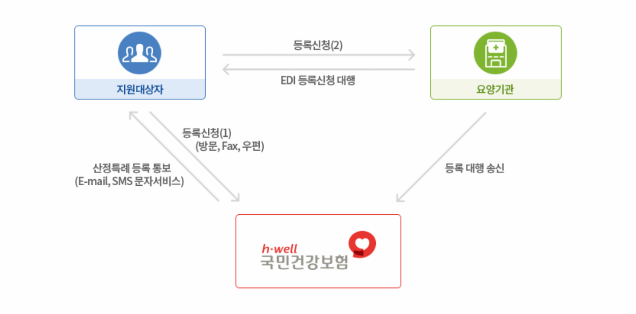 의사가 발행한 건강보험 산정 특례 등록 신청서 1부, 질환별 등록 신청서가 필요합니다. 의사가 암과 희소 질환, 중증 난치질환, 중증 치매, 중증 화상, 결핵, 잠복 결핵 감염자로 확진한 경우 병원 내 비치된 신청서를 작성하여 건강보험공단 지사 또는 요양기관에 등록 신청하거나 입원해 있는 원무팀에 제출하시면 대행하여 등록을 해주며, 보통 입원해 있는 상태에서 등록하게 되는 경우에는 병원 내에서 신청, 등록까지 모두 완료됩니다.