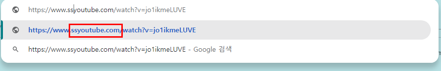 상단의 방법과 동일하게 인터넷 주소창에 원하는 영상의 링크를 복사 후 붙여넣기 한 뒤, youtube 앞에 "ss" 를 입력한 후 검색하시면 됩니다. 100% 무료에 모든 브라우저가 호환 가능하지만, 해상도가 최대 720P 이므로 참고하시길 바랍니다.